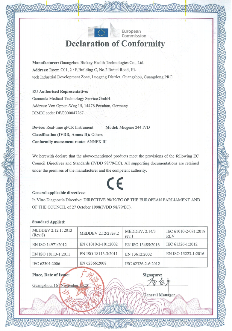 快訊!Micgene 244 IVD實(shí)時(shí)熒光定量PCR儀獲歐盟CE認(rèn)證