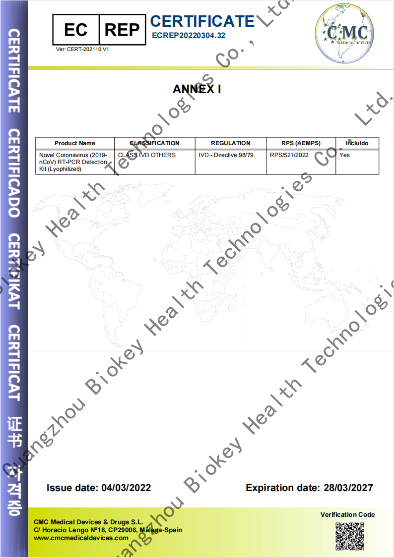 近日,廣州源起健康科技有限公司CE家族再添一成員,自主研發(fā)生產(chǎn)的新型冠狀病毒(2019-nCoV)RT-PCR 檢測試劑盒(凍干)產(chǎn)品獲得歐盟CE認(rèn)證,符合歐盟醫(yī)療器械相關(guān)技術(shù)要求,可在認(rèn)可CE標(biāo)識的國際市場進(jìn)行銷售和使用。